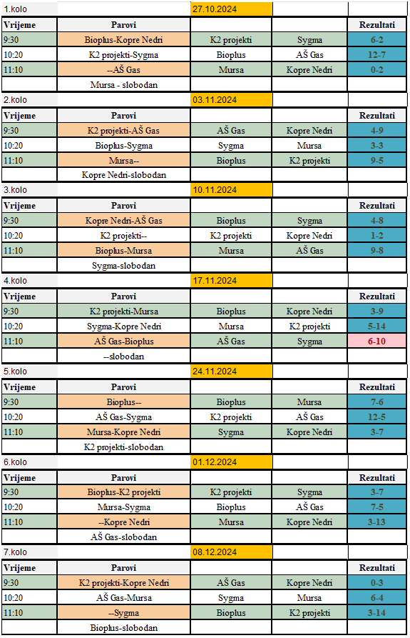 Raspored utakmica 1.KRUG